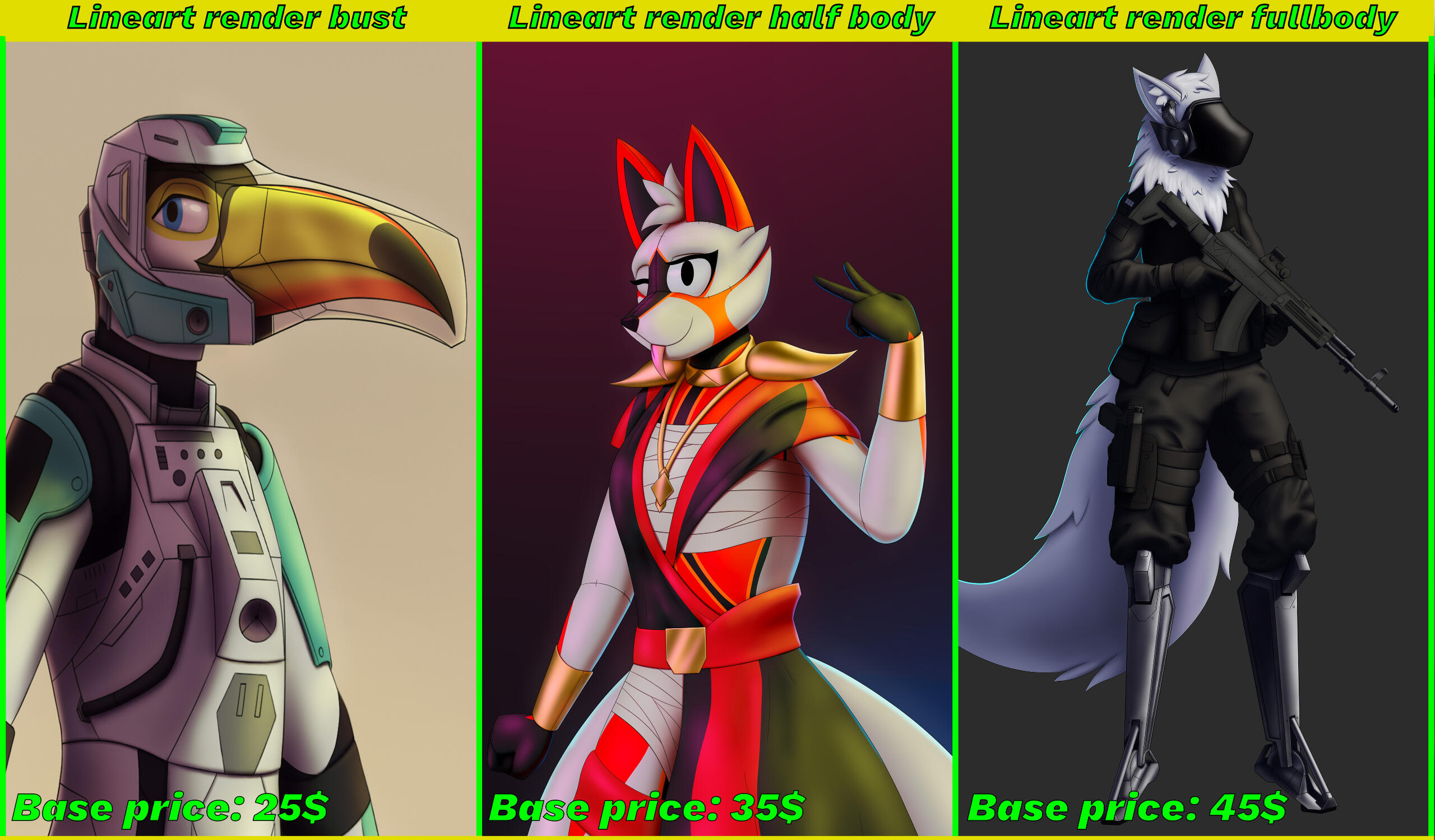 | Rendered Line art | 25$ | 35$ | 45$ |